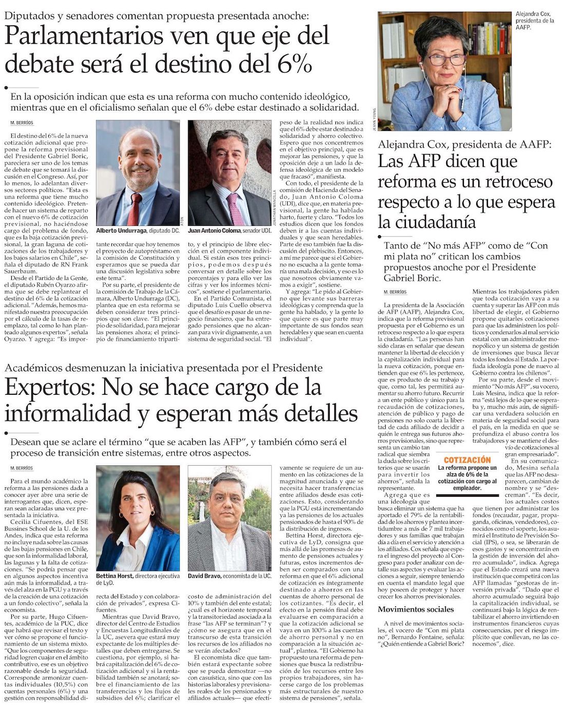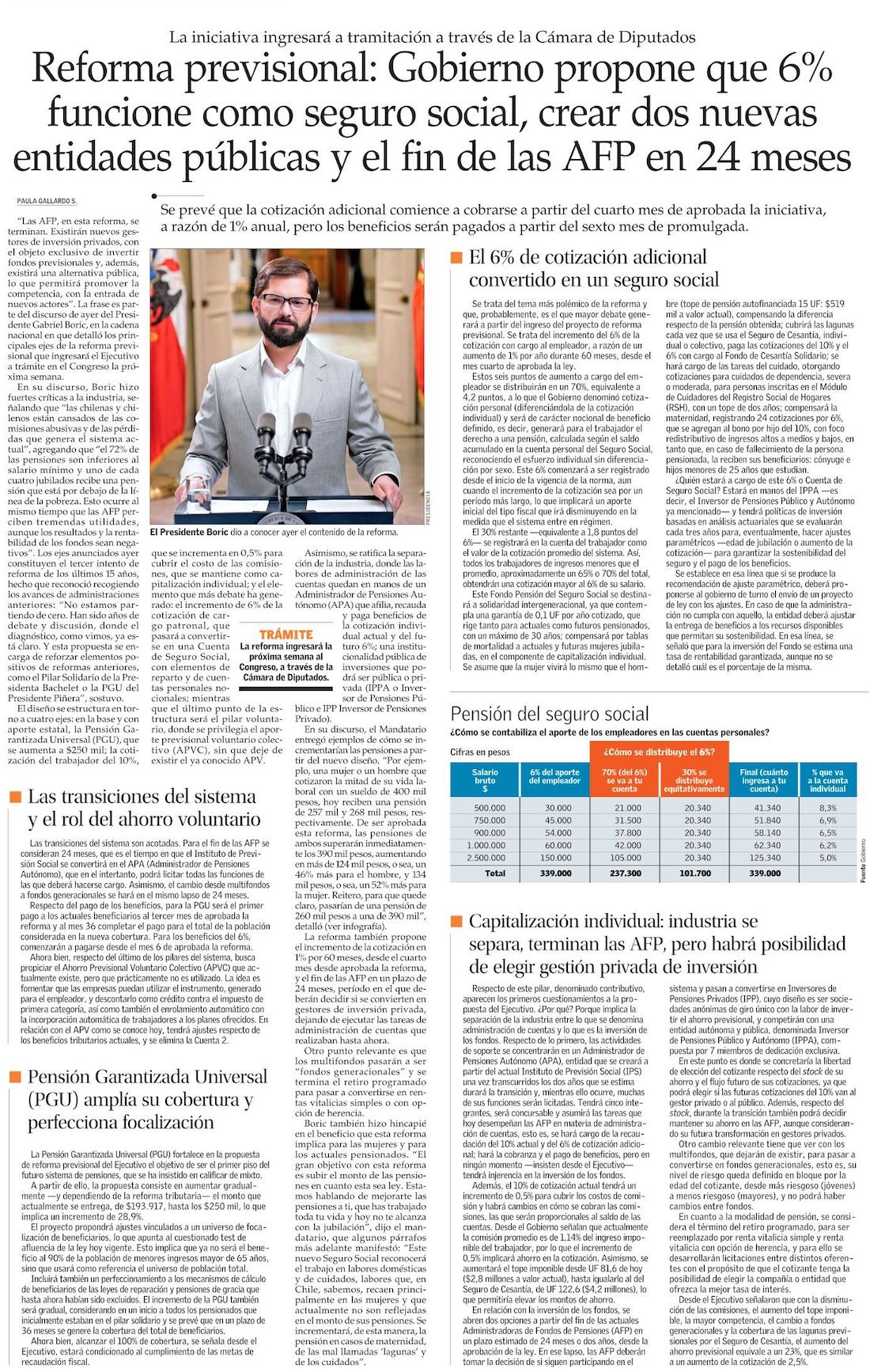 Reforma previsional pone fin a las AFP en dos años, mantiene un 10,5% en cuentas individuales con herencia y crea fondo común con 6% extra - (Pulso)