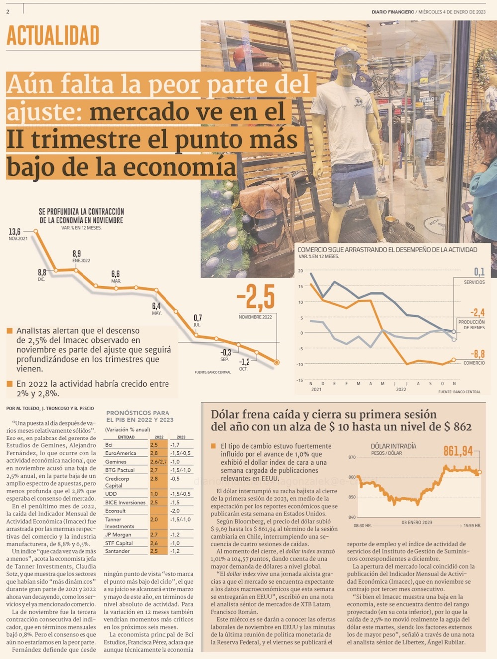 Economía se encamina a crecer en 2022 por sobre lo esperado por el mercado, pese a caída del Imacec de 2,5% en noviembre - (Pulso)