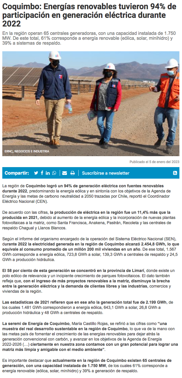 Generación eléctrica regional en 2022 fue un 94% con energías renovables - (lavozdelnorte)