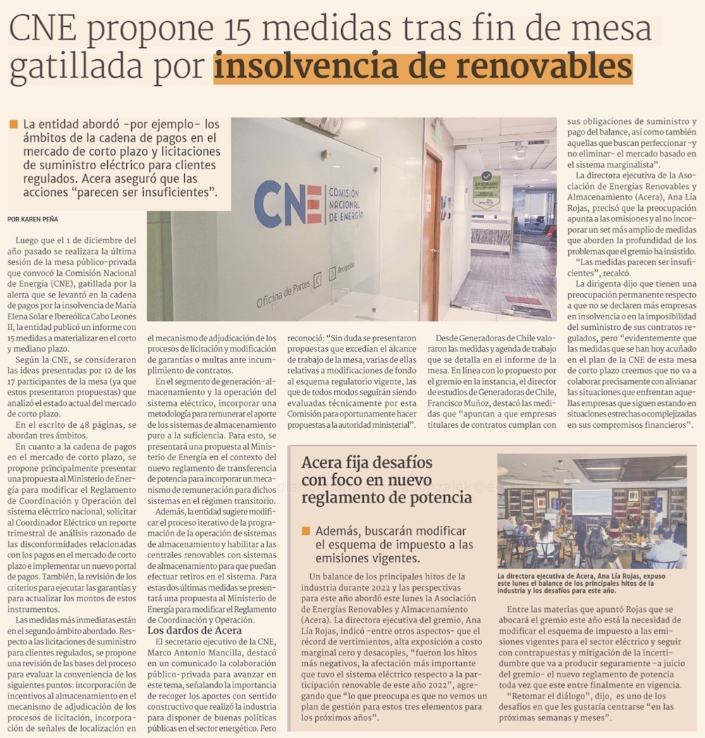 Comisión Nacional de Energía plantea 15 propuestas para apoyar a generadoras en caso de insolvencias - (Pulso)
