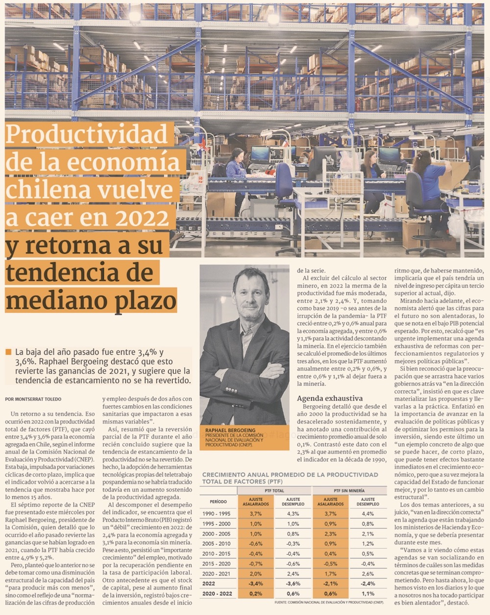 Productividad cae entre 3,4% y 3,6% en 2022 y vuelve a tendencia de mediano plazo - (Pulso)