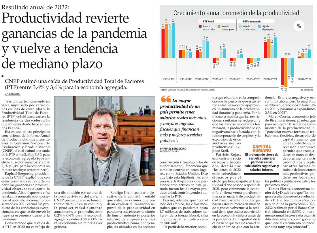 Productividad de la economÃa chilena vuelve a caer en 2022 y retorna a su tendencia de mediano plazo - (Diario Financiero)