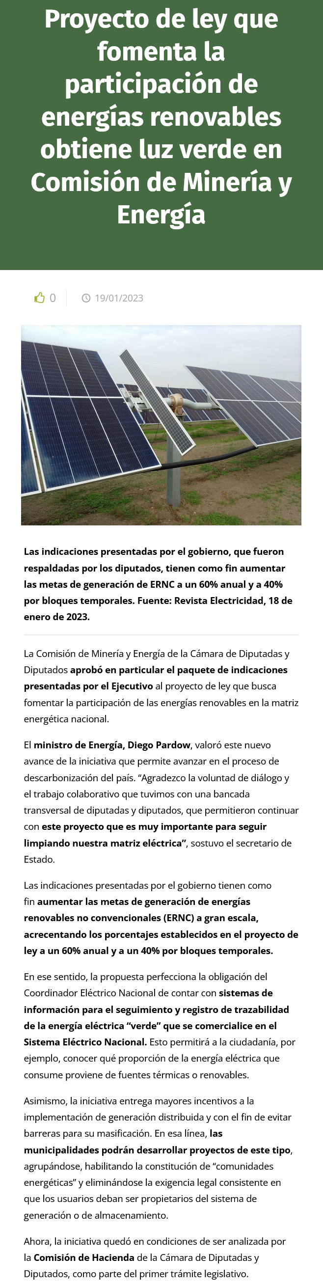 Proyecto de ley que fomenta la participación de energías renovables obtiene luz verde en Comisión de Minería y Energía - (revistaei.cl)