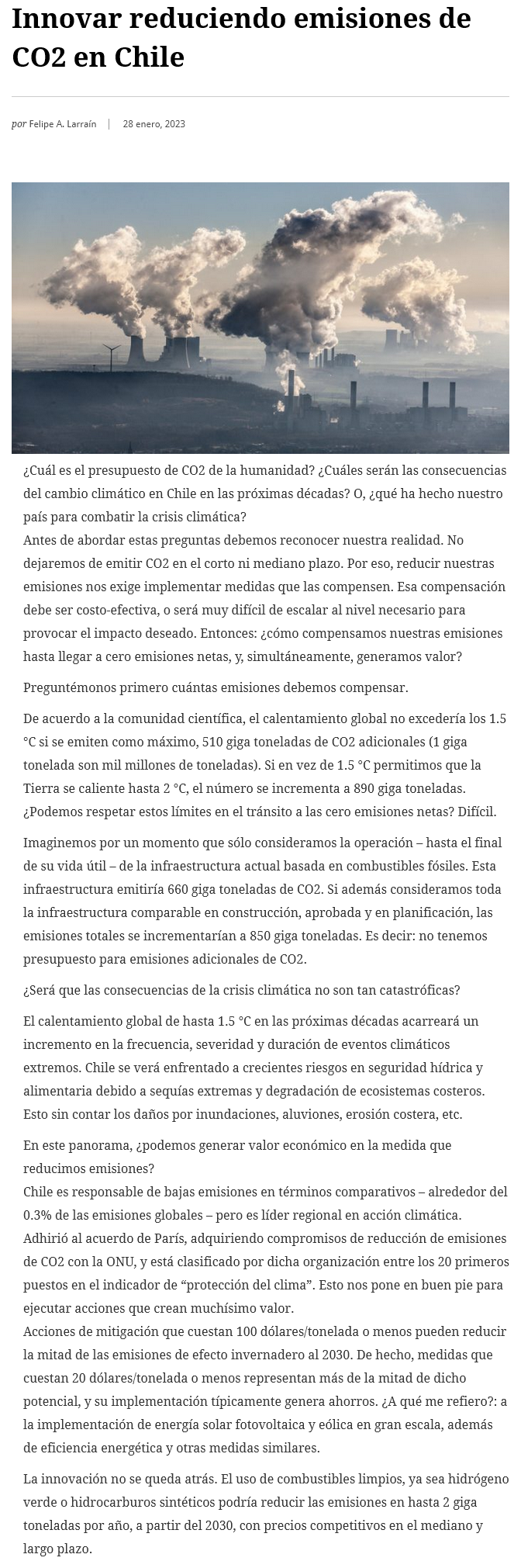 Innovar reduciendo emisiones de Co2 en Chile - (La Estrella de Chiloé)