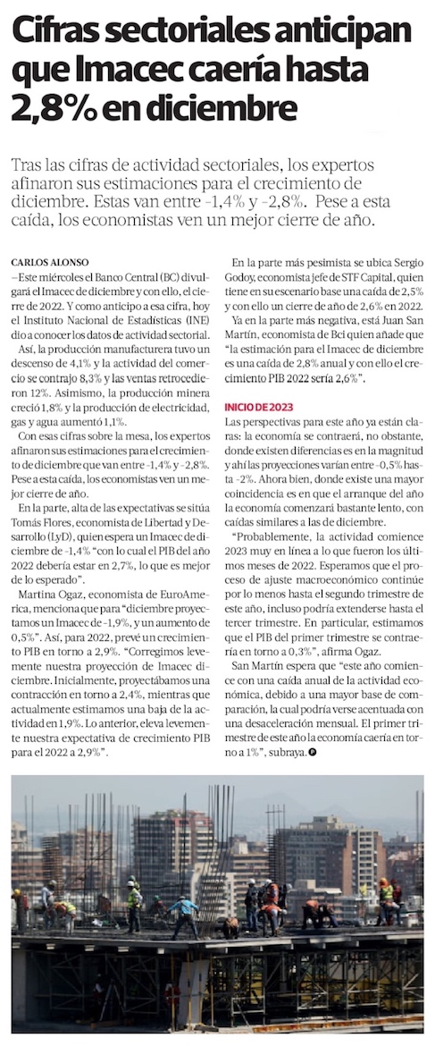 Cifras sectoriales en diciembre marcan una contracción económica menor a la prevista, pero se confirmaría “recesión técnica” - (El Mercurio de Santiago)