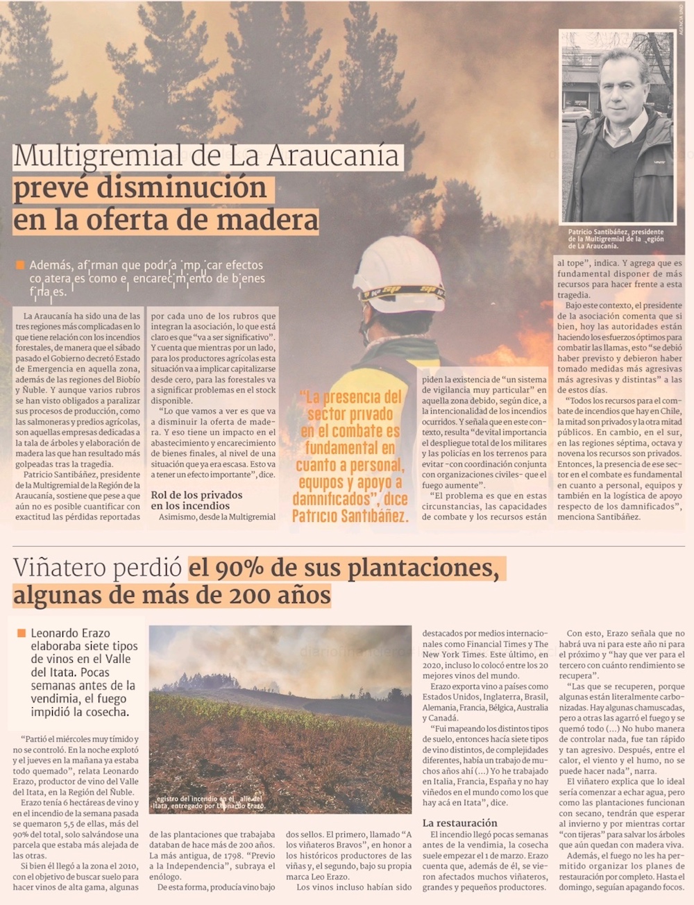 Incendios forestales en el sur el país han provocado pérdidas por US$ 540 millones - (El Mercurio de Santiago)