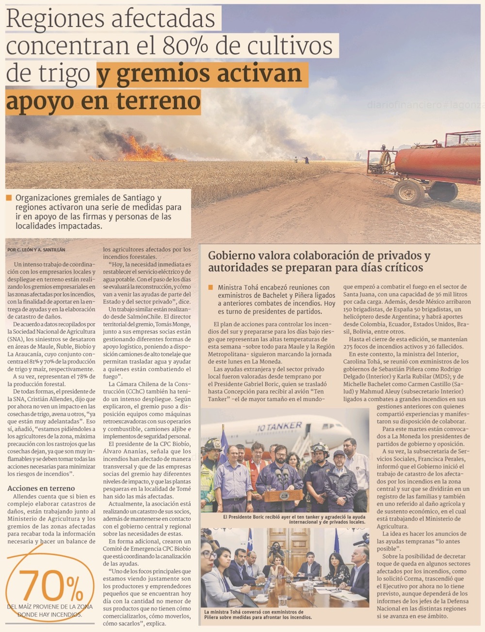 Empresarios afectados hacen primeros balances y alertan sobre impacto en producción de cereales - (Diario Financiero)