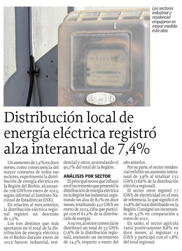 Distribución de energía eléctrica de Biobío incrementó 7,4% - (La Tribuna)
