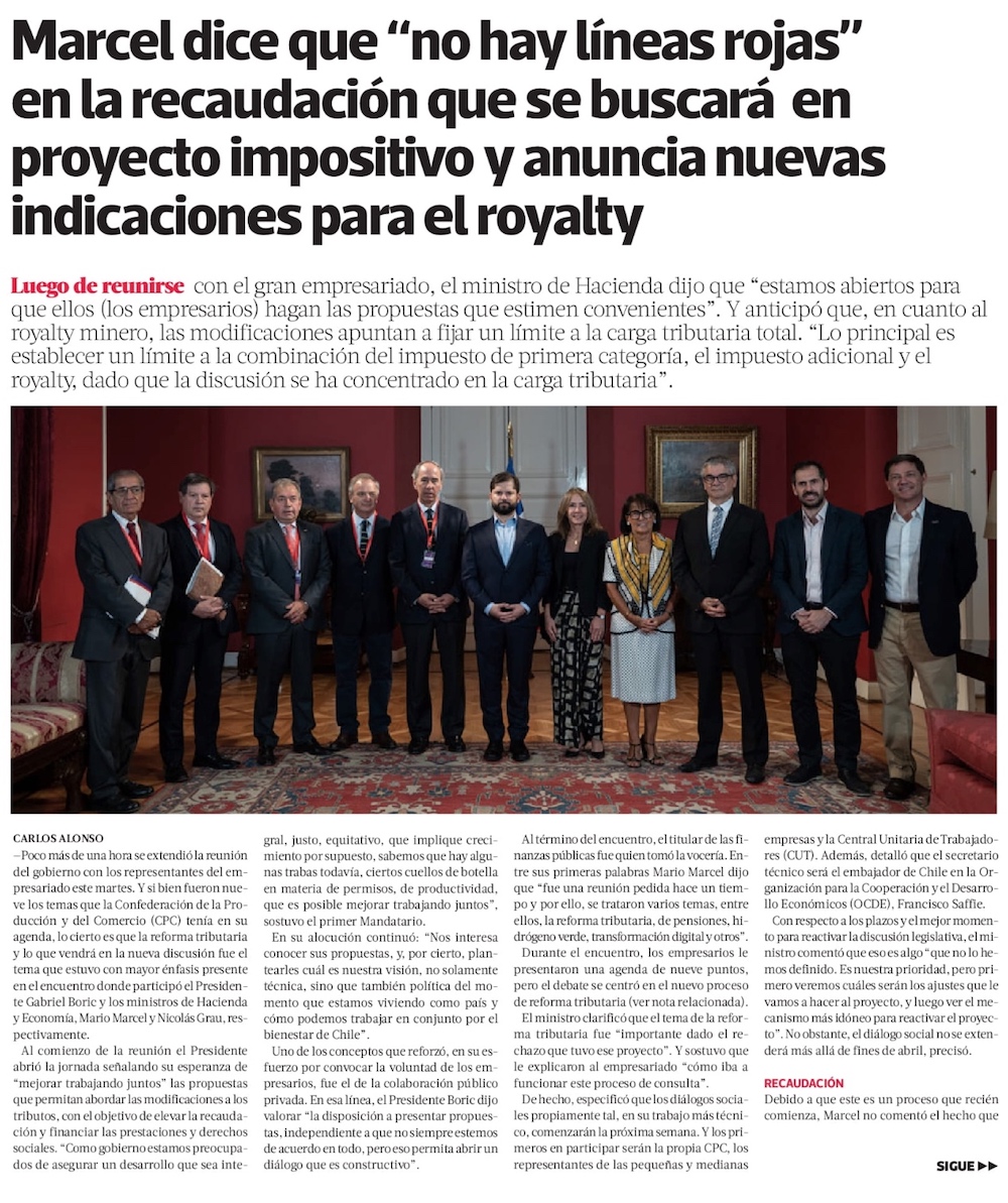 Marcel anticipa ajustes a royalty y se abre a flexibilizar recaudación de reforma tributaria - (El Mercurio de Santiago)