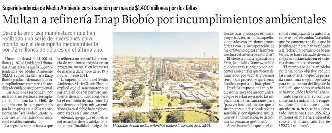 Súper de M. Ambiente sanciona a refinería de Enap - (El Mercurio de Santiago)