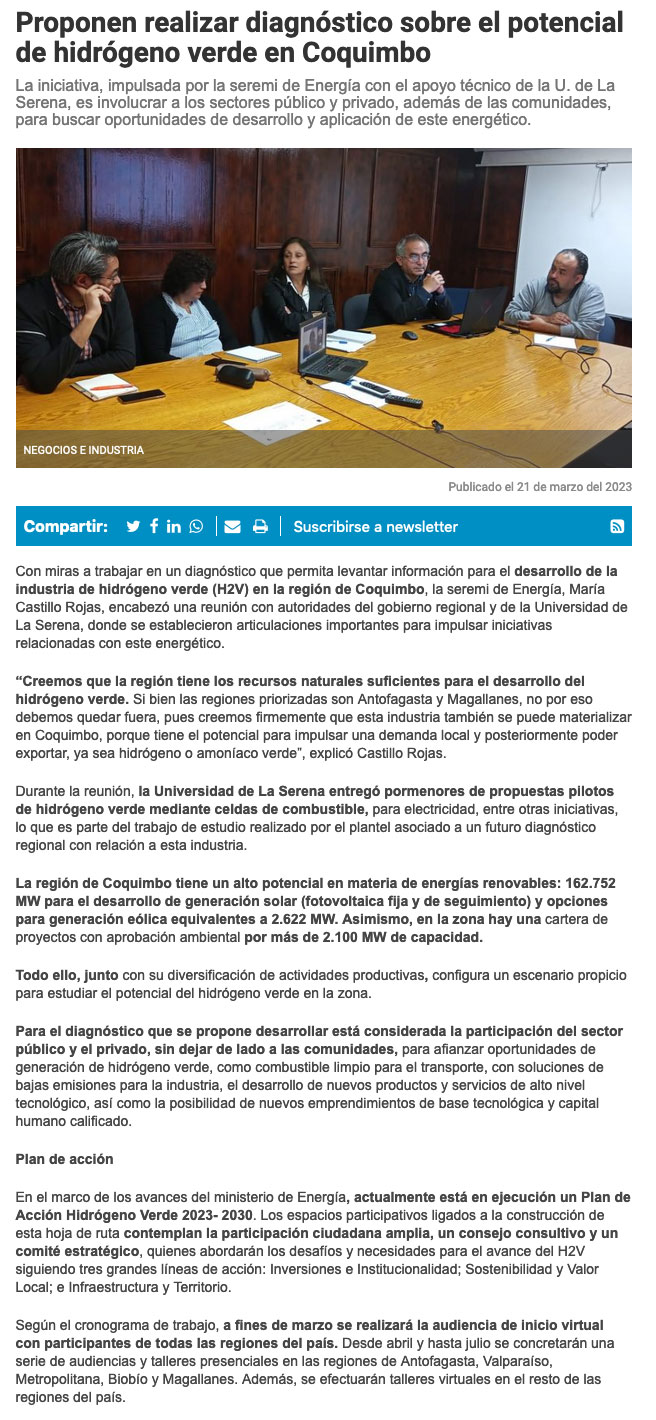 Buscan realizar diagnóstico sobre el potencial de hidrógeno verde en la Región de Coquimbo - (norteyenegia.cl)