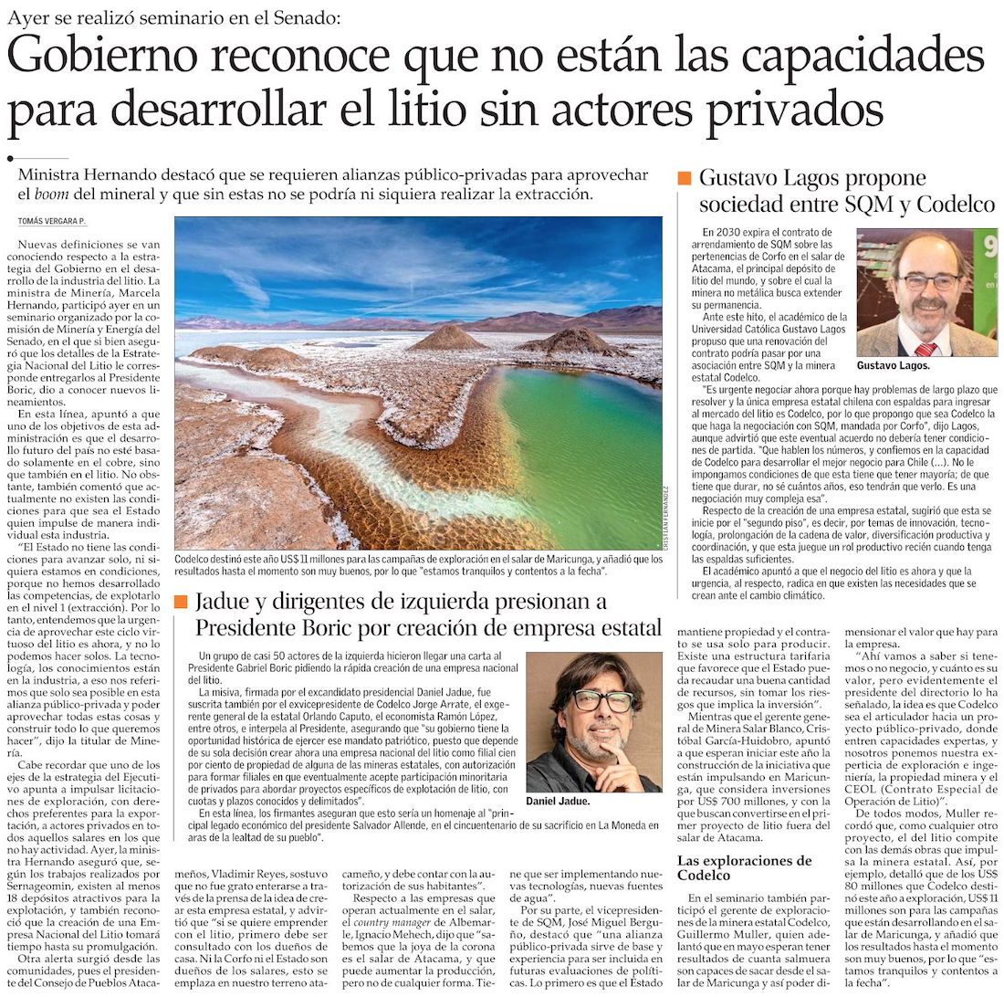 Ministra Hernando y el desarrollo del litio: será con inversión pública y privada - (Diario Financiero)