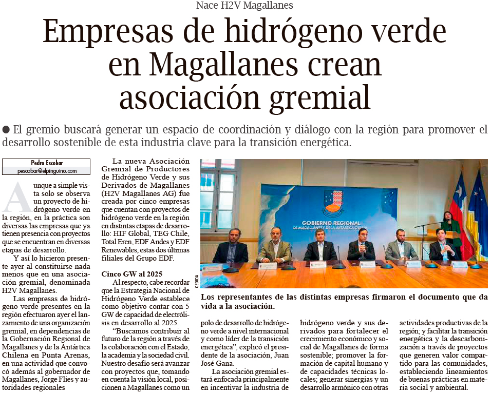 Empresas de hidrógeno verde en Magallanes crean asociación gremial regional - (h2news.cl)