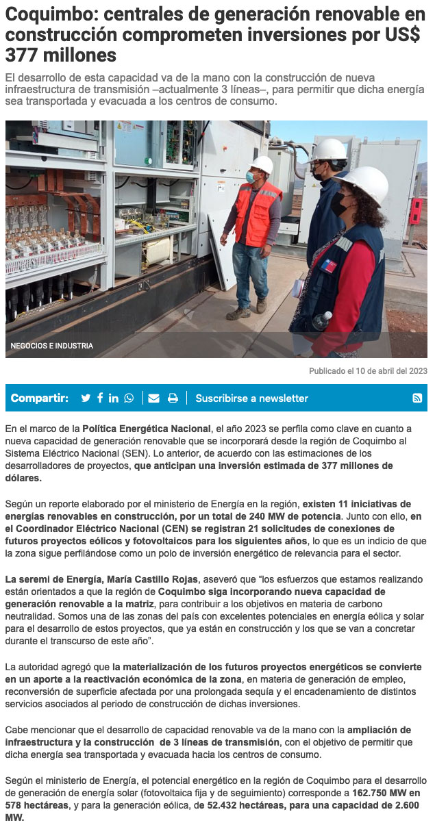 Centrales de generación renovables en construcción comprometen inversiones por US$ 377 millones - (nuevaminería online)