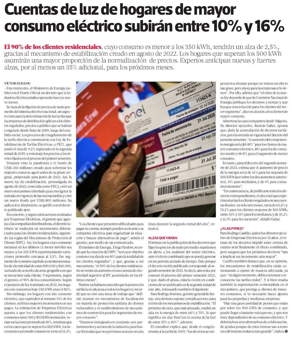 Se concretará alza de las cuentas de la luz: cerca del 90% de los clientes residenciales verá aumento de 2,5% - (El Mercurio de Santiago)
