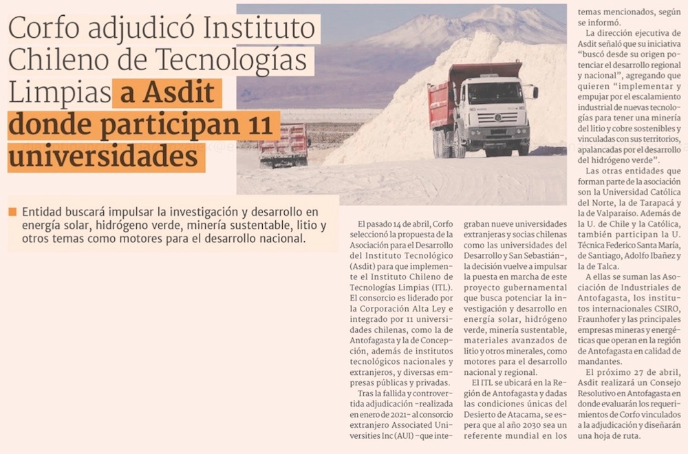 Corfo adjudicó implementación de Instituto Chileno de Tecnologías Limpias a consorcio ASDIT - (induambiente.cl)