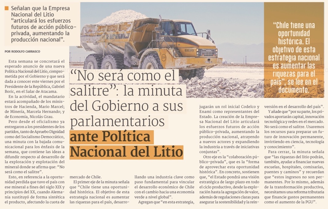 Litio: Sorcia se aliaría con el Estado, pero sin ceder el control - (La Segunda)