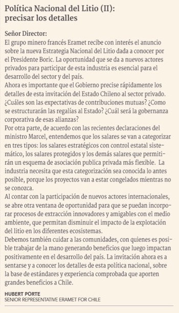 Política Nacional de Litio (I): poca flexibilidad - (Diario Financiero)