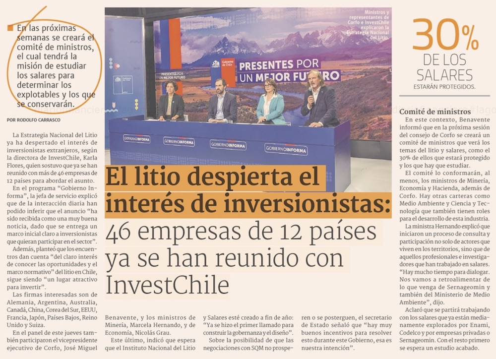 Gobierno dice que ha recibido interés de 46 empresas por litio - (El Mercurio de Santiago)