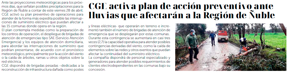 CGE activa plan de acción preventivo ante lluvias que afectarán a la Región del Maule - (El Heraldo (Linares))