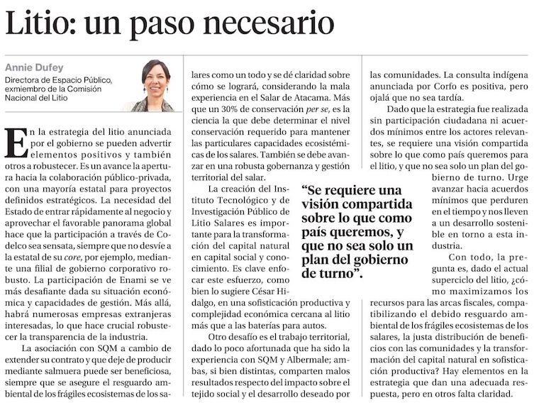 Litio: una nueva Ley de Transferencia Tecnológica para Chile - (Diario Financiero)