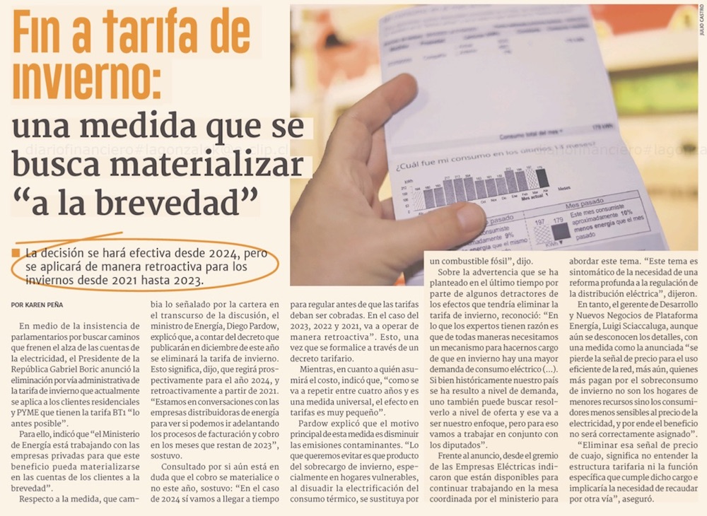 Fin a tarifa eléctrica de invierno: Gobierno busca fórmulas para aplicarla este año con retroactividad desde 2021 - (Pulso)