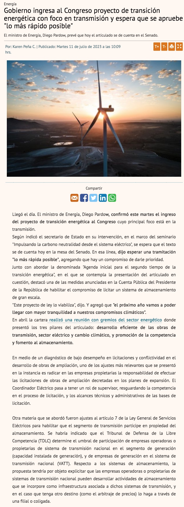 Gobierno ingresa proyecto con impulso a la transmisión como infraestructura habilitante para la transición energética - (Pulso)