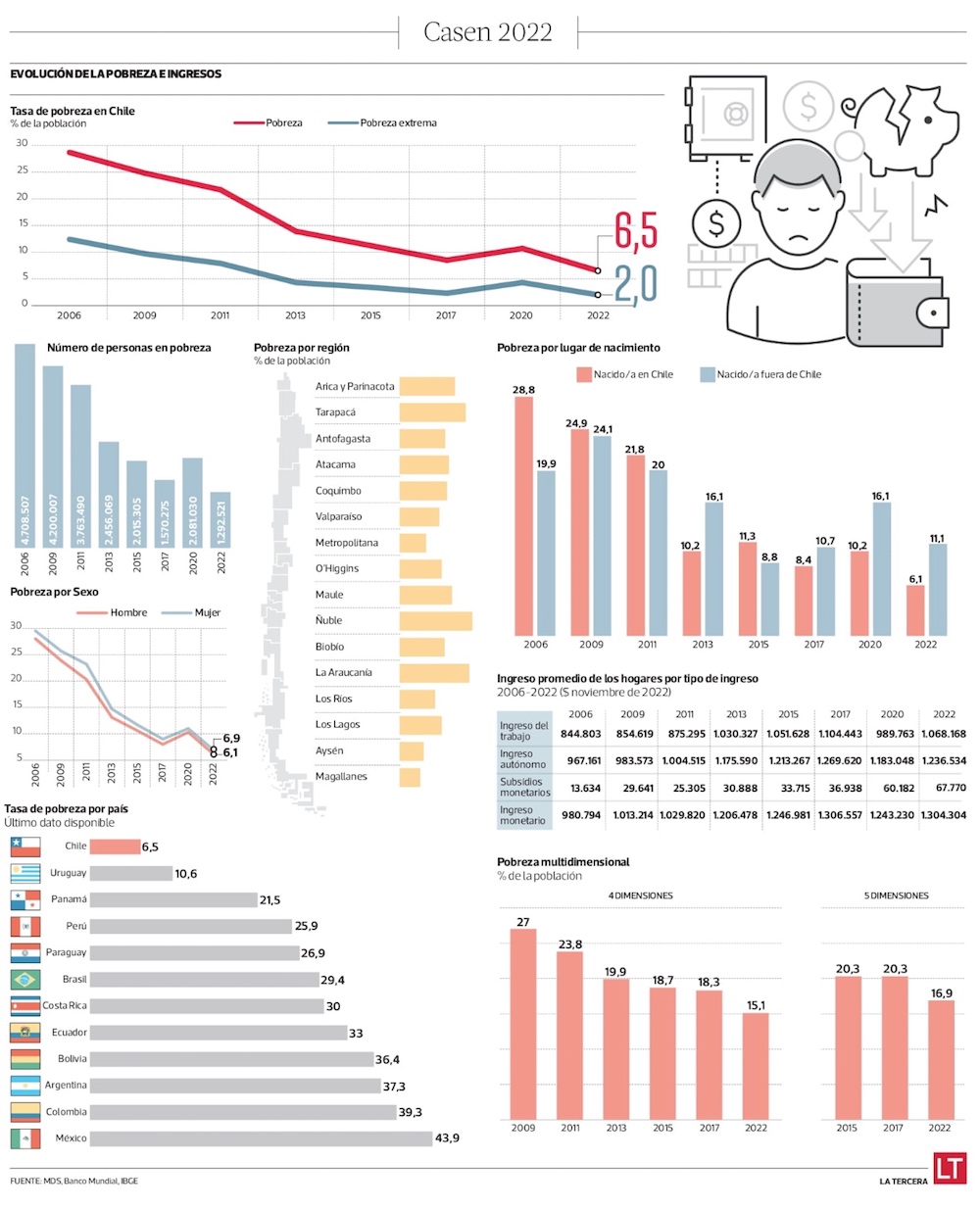 Casen 2022: pobreza cae gracias a apoyo estatal, pero expertos ven reto en mujeres, empleo y regiones - (Diario Financiero)
