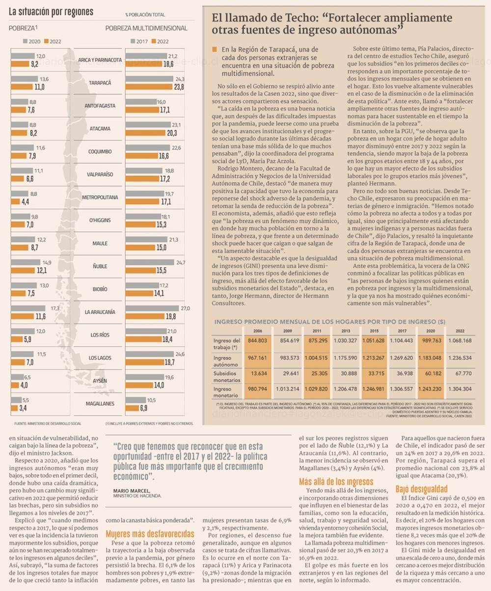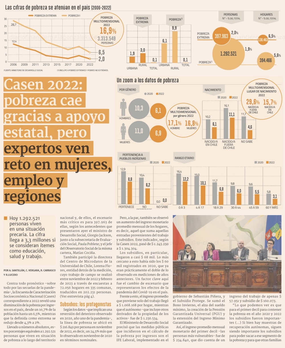Entrega de subsidios y mejoría pospandemia explican caída de la pobreza a su menor nivel - (El Mercurio de Santiago)