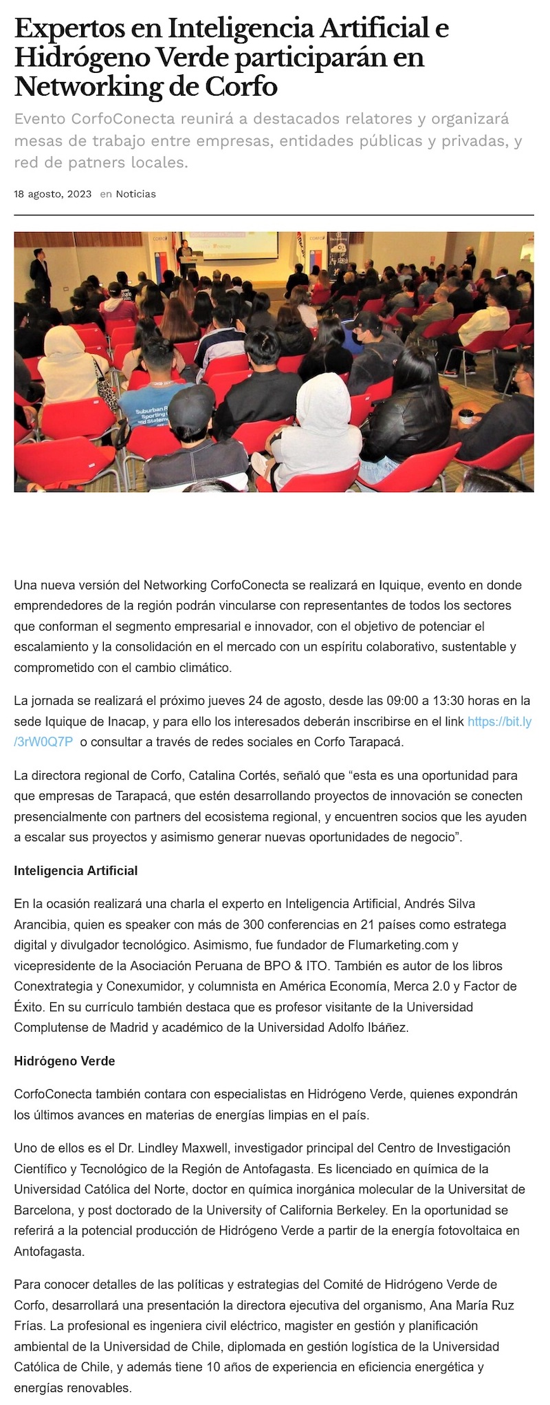 Networking de Corfo traerá a expertos en inteligencia artificial e hidrógeno verde - (El Longino de Iquique)