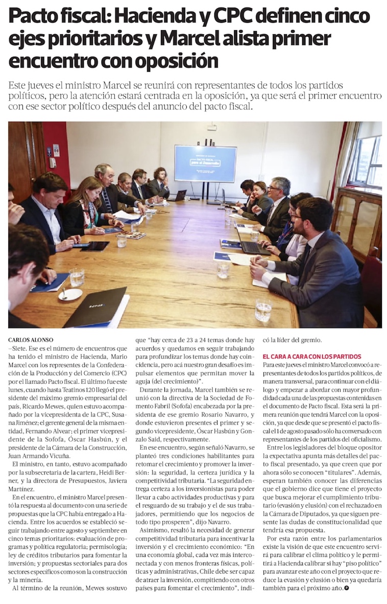 Pacto fiscal: Gobierno y empresarios logran primeros acuerdos, pero sigue distancia en antievasión y elusión - (Diario Financiero)