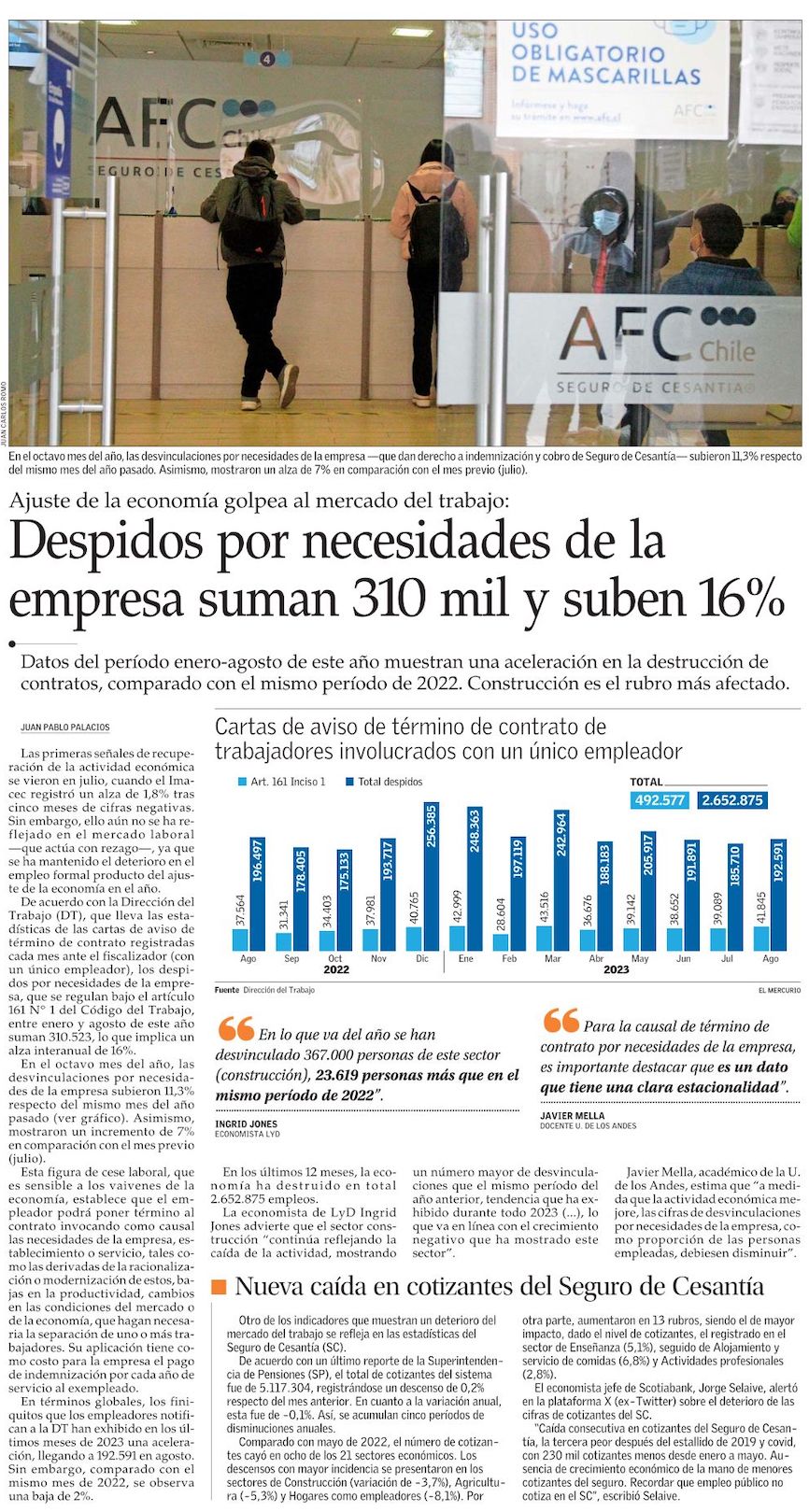 Despidos por necesidad de la empresa superan los 300 mil en enero-agosto y aumentan casi 16% en un año - (Pulso)