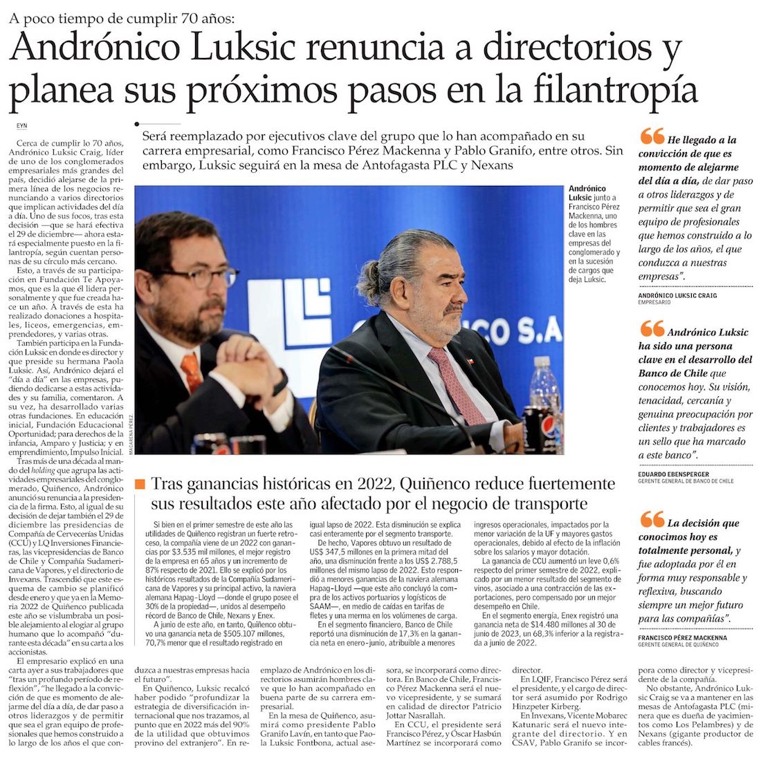 Andrónico Luksic a meses de cumplir 70 años: “Es momento de alejarme del día a día” - (Diario Financiero)