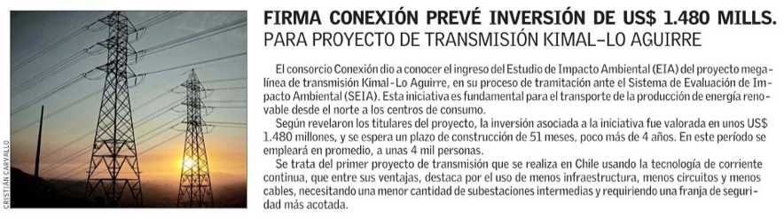 Línea de transmisión Kimal-Lo Aguirre ingresa Estudio de Impacto Ambiental para iniciar obras - (DF Online)