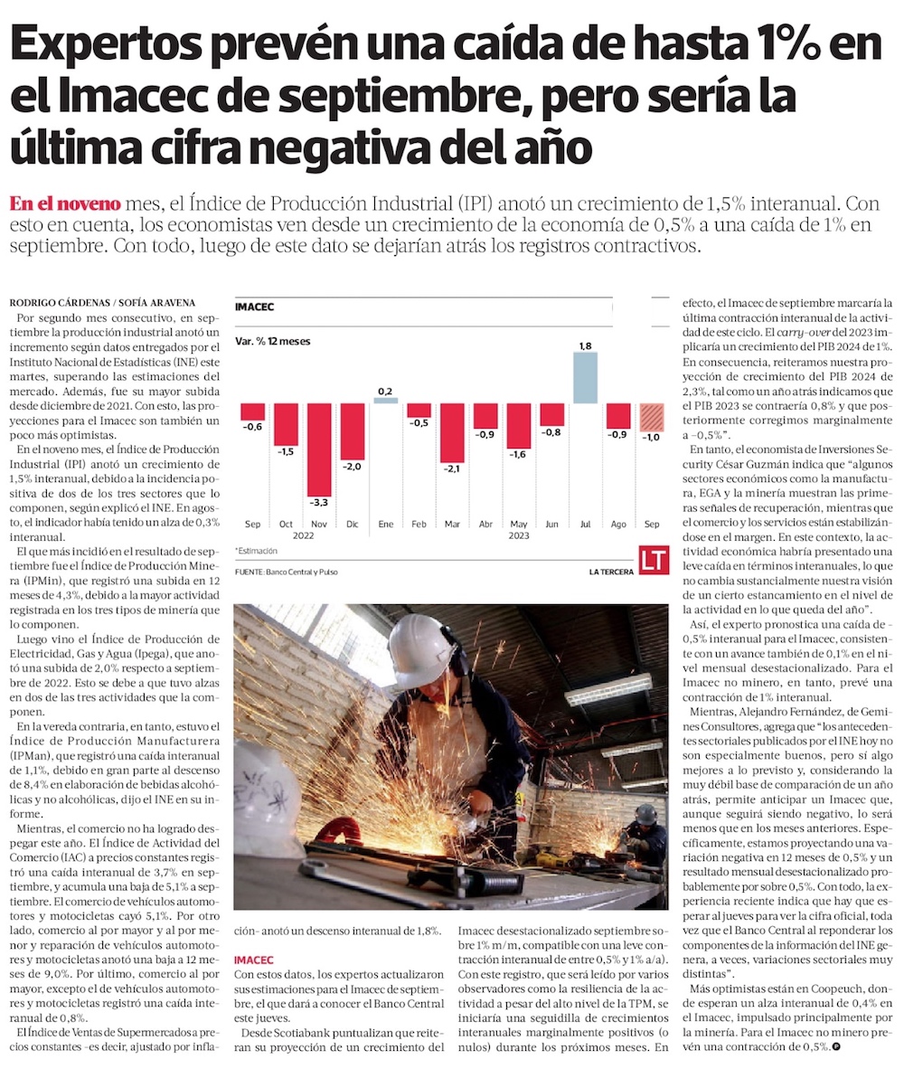 Economistas estiman Imacec de entre -1% y 0,4% en septiembre - (El Mercurio de Santiago)