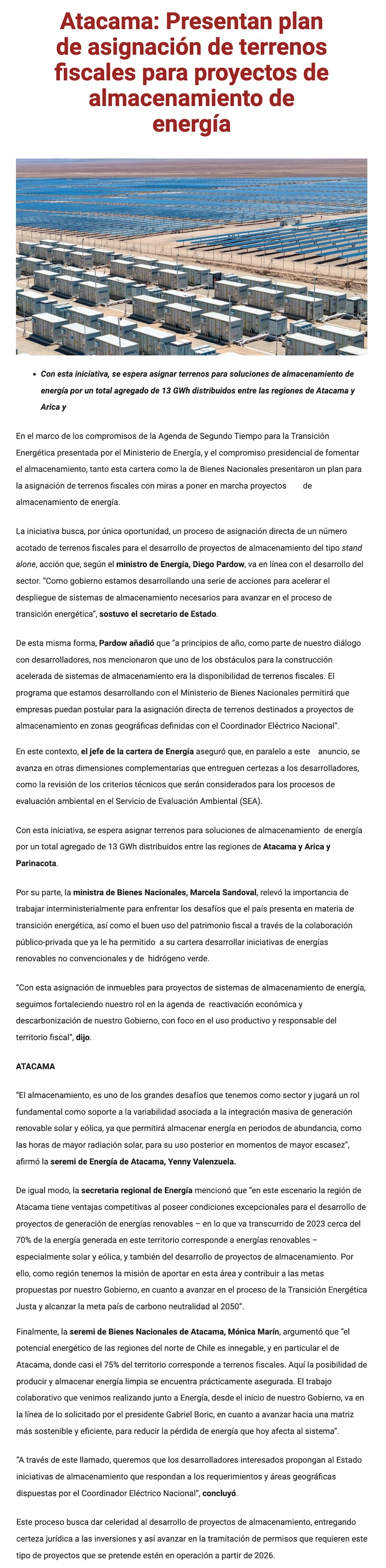 Atacama: Presentan plan de asignación de terrenos fiscales para proyectos de almacenamiento de energía - (elzorronortino.cl)