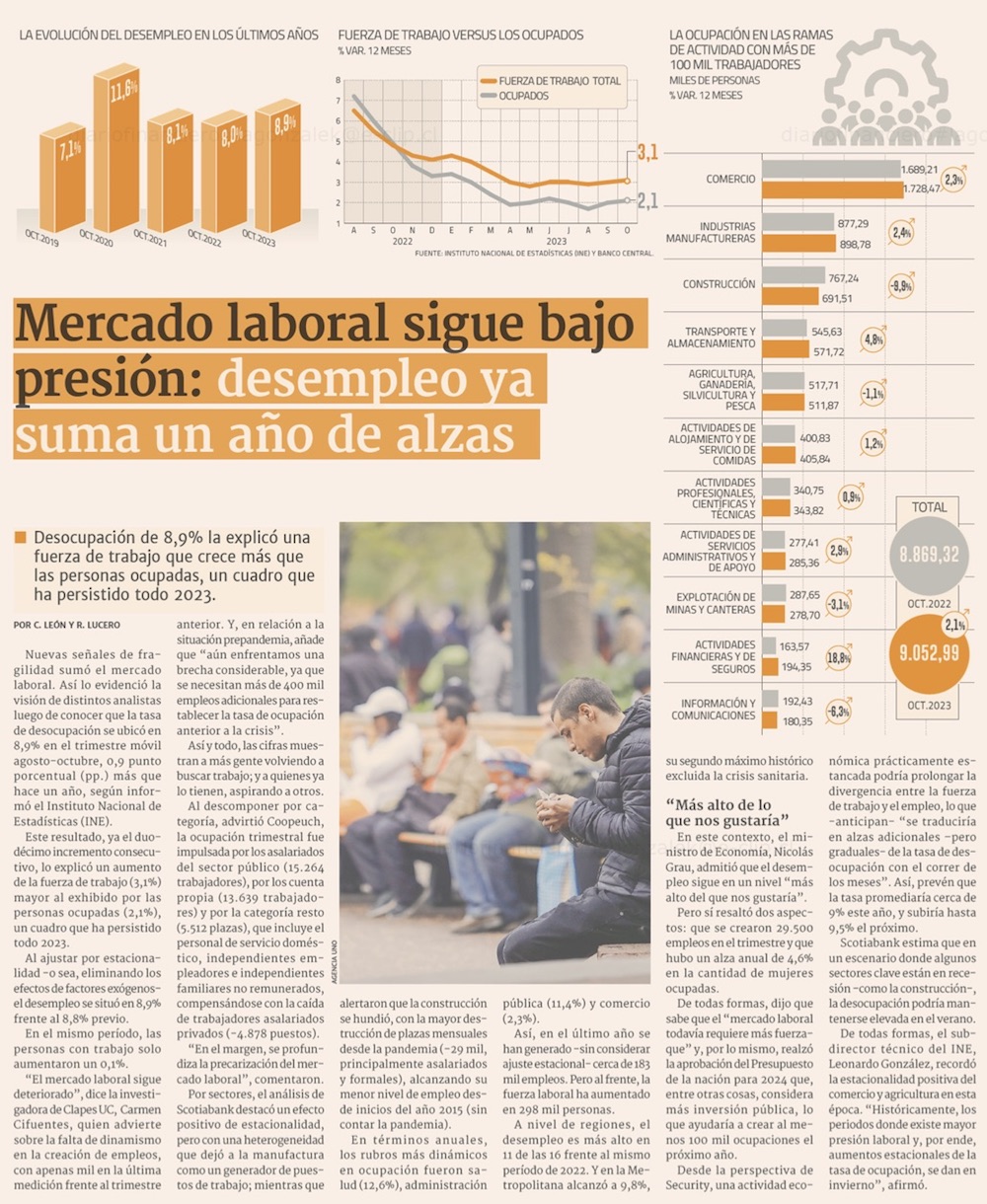 Desocupación se estaciona en 8,9% y casi la mitad de los empleos creados en el último año son trabajadores públicos - (Pulso)