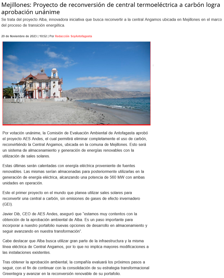 Aprueban reconversión de la termoeléctrica Angamos - (El Mercurio de Calama)