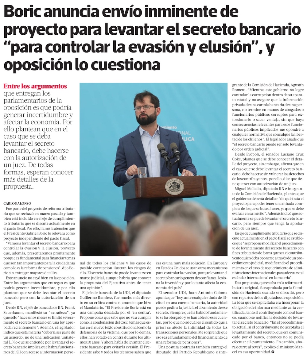 “Con voluntad política y mucho trabajo”, Boric promete fin a trabas de proyectos - (El Mercurio de Santiago)