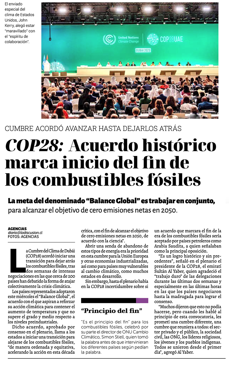 La COP28 acuerda por primera vez una transición para abandonar las energías fósiles - (El Mercurio de Santiago)