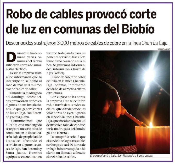 Robo de más de 3 kilómetros de cables genera masivo corte de luz en cuatro comunas del Bío Bío - (biobiochile online)
