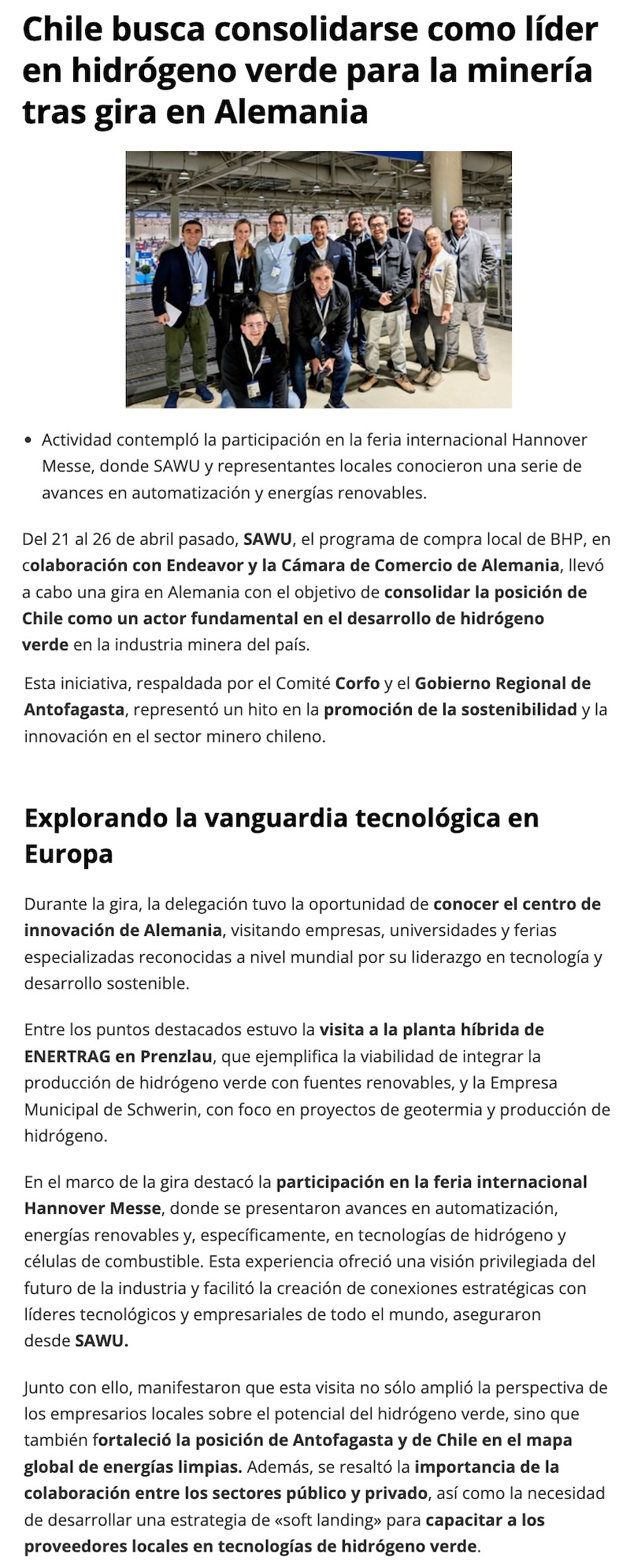 Chile busca consolidarse como líder en hidrógeno verde para la minería tras gira en Alemania - (mch.cl)