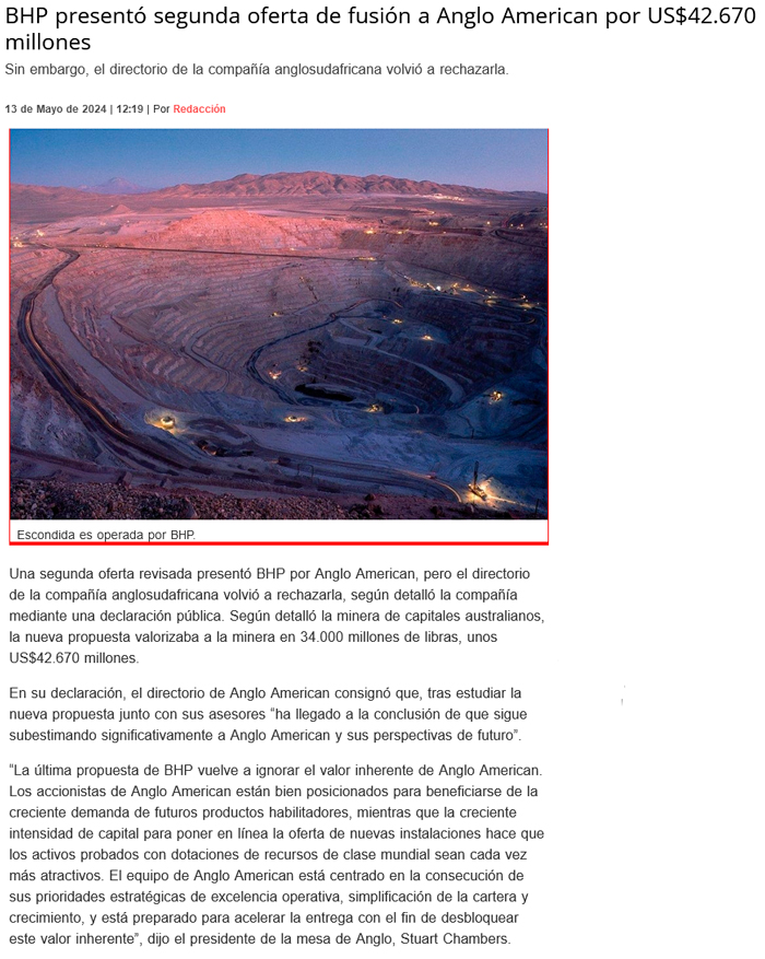 Anglo American rechaza propuesta de adquisición de BHP valorada en más de USD$42.700 millones - (mineriayfuturo.cl)