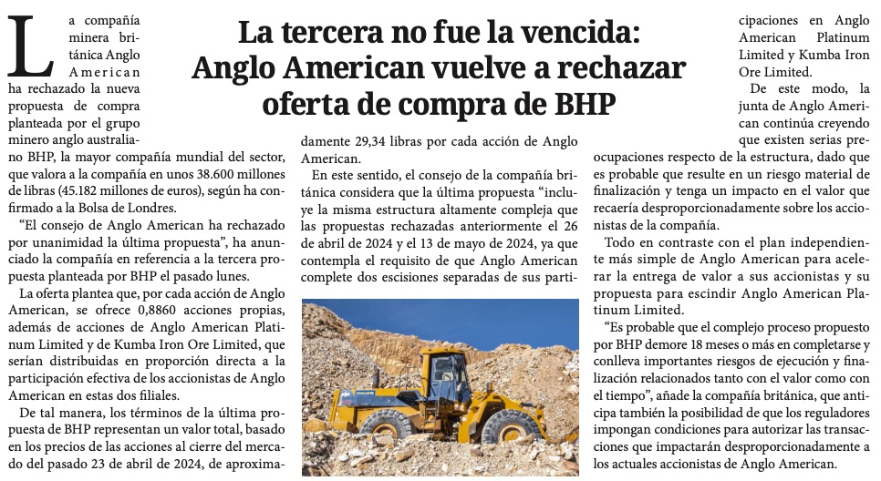 ¿La cuarta es la vencida? Anglo American vuelve a rechazar oferta de BHP, pero extiende plazo hasta el 29 de mayo - (reporteminero)