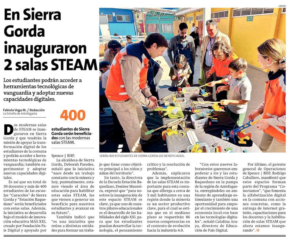 Inauguraron salas STEAM que apoyarán la transformación digital de estudiantes de Sierra Gorda y Baquedano - (elamerica)