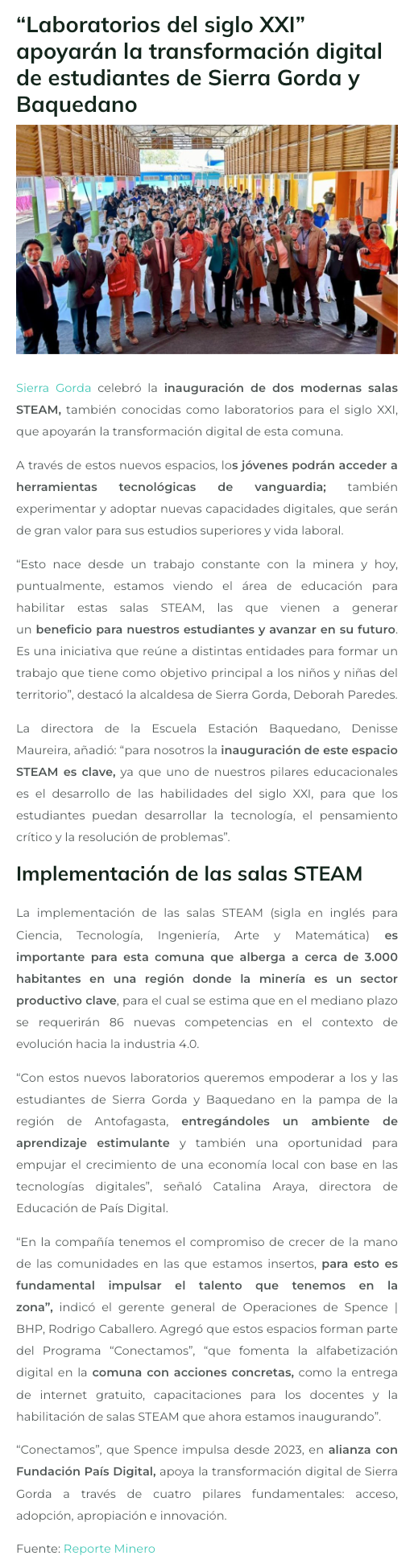 Inauguraron salas STEAM que apoyarán la transformación digital de estudiantes de Sierra Gorda y Baquedano - (elamerica)