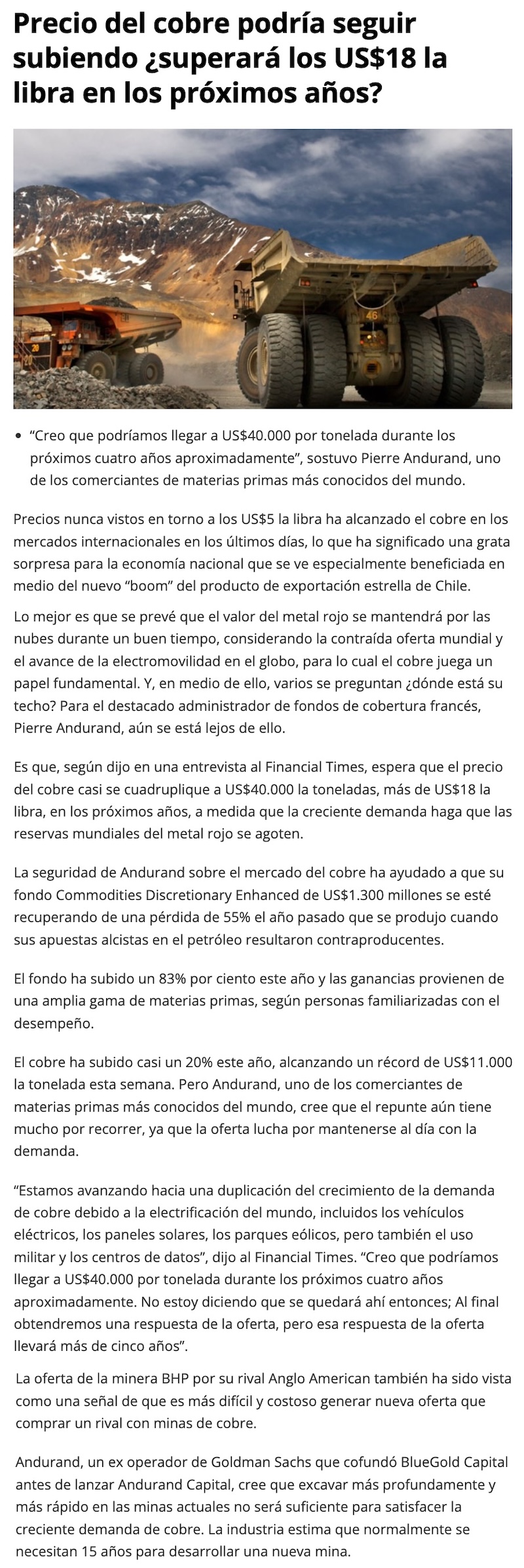 ¿Cobre lejos de su techo?: Destacado trader francés cree que superará los US$18 la libra en los próximos años - (eldiariodesantiago.cl)