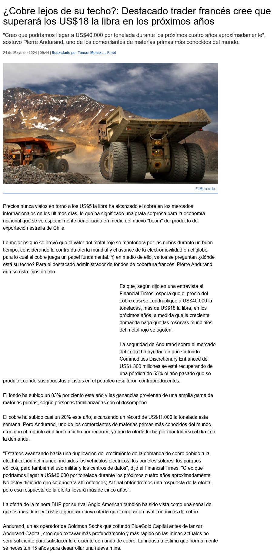 ¿Cobre lejos de su techo?: Destacado trader francés cree que superará los US$18 la libra en los próximos años - (eldiariodesantiago.cl)