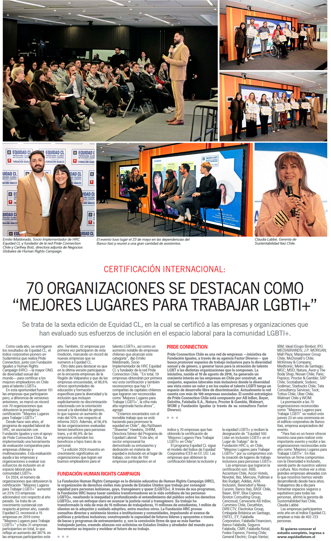 Presentan política sobre inclusión de personas LGBTI+ para la industria minera - (El Mercurio de Santiago)