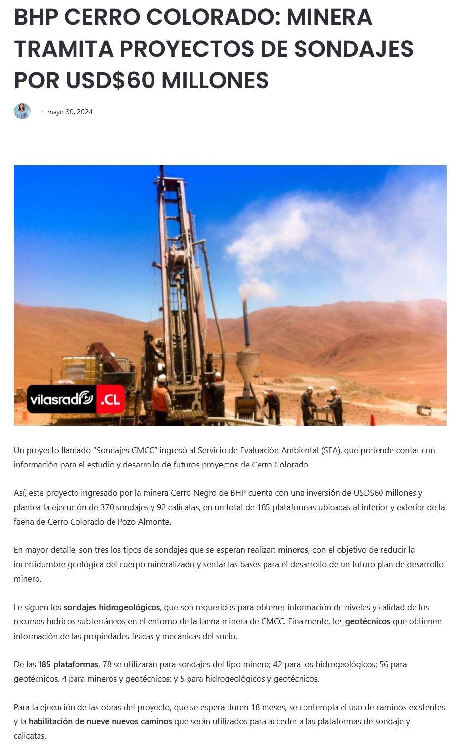 BHP inicia sondajes para revivir Mina Cerro Colorado - (mineriayfuturo.cl)